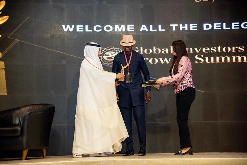 Sheikh Sidia Bayo being awarded international consultant award at the Global Investment Summit 2022